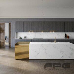 FPG Stone offers the entire line of Caesarstone Quartz. Founded in 1978 and manufactured in the U.S., Caesarstone is made from 95% pure natural quartz mixed with eco-friendly resins and polymers. Caesarstone is extremely hard, light, and flexible but is heat, cold, stain, scratch, and bacteria resistant. It’s an ideal surface for kitchen countertops, bathrooms, flooring, and wall siding. It also comes with a lifetime limited transferable warranty. To see the entire line of Caesarstone Quartz please visit our showroom or call us to schedule an in home or showroom appointment.